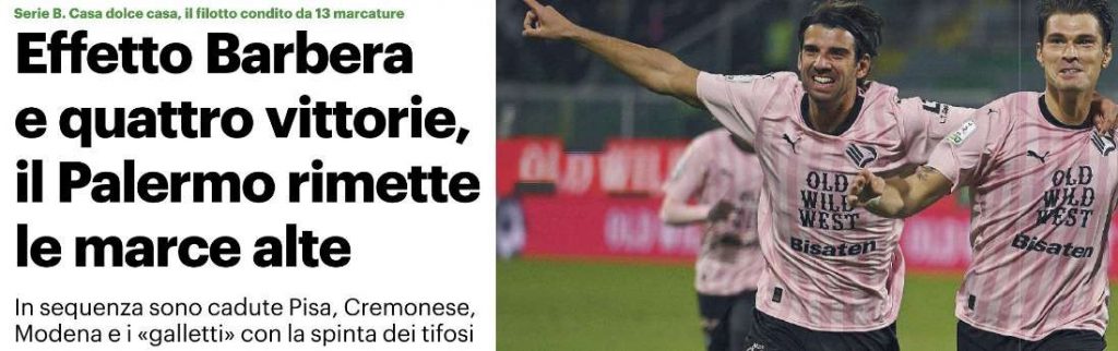 L’edizione odierna de “Il Giornale di Sicilia” si sofferma sull’effetto Barbera dove il Palermo ha gia conquistato 4 vittorie di fila.