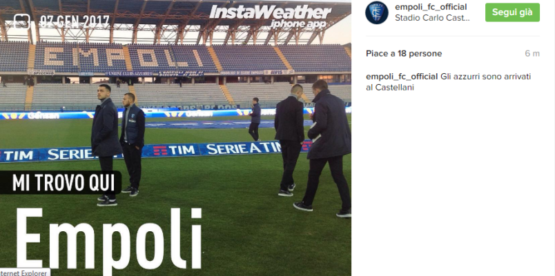 Empoli e Palermo sono in campo per la consueta ricognizione pre gara. I toscani tramite il proprio profilo Instagram hanno postato una foto con la temperatura percepita in campo. Di seguito il post in questione: