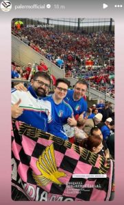 In questi istanti si sta disputando Italia-Albania, gara valevole per la prima giornata della fase a gironi degli Europei 2024. Sugli spalti del Signal Iduna Park di Dortmund tre tifosi italiani portano i colori del Palermo all’interno dello stadio. Il club rosanero, infatti, ha pubblicato nelle proprie Instagram stories la foto dei tre sostenitori siciliani: