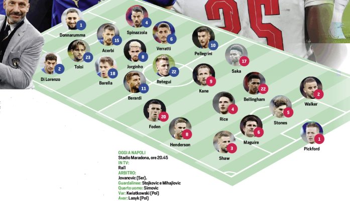 Euro 2024 Stasera Italia-Inghilterra, le probabili formazioni e come vederla in tv