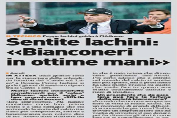L’ex tecnino del Palermo e neo allenatore dell’Udinese Beppe Iachini, in un’intervista rilasciata al “Resto del Carlino”, ha parlato anche del tecnico della Primavera del Palermo Giovanni Bosi, spendendo per lui delle parole di grande stima. Di seguito le sue parole: «Di Giovanni Bosi non posso che parlare bene perché è un ragazzo davvero serio, meticoloso e preparato. Un tecnico che farà strada perché ama il calcio e lavora con grande passione».