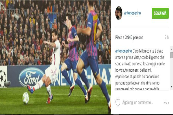 Antonio Nocerino, ex centrocampista del Palermo che ha da poco rescisso il contratto che lo legava al Milan, ha salutato il club rossonero attraverso un messaggio pubblicato sul proprio profilo Instagram accompagnato dalla foto del gol siglato contro il Barcellona: “Caro Milan con te è stato amore a prima vista, ricordo il giorno che sono arrivato come se fosse oggi, con te ho vissuto momenti bellissimi, esperienze stupende ho conosciuto persone spettacolari che rimarranno sempre nel mio cuore, a partire dalle persone di Milanello a quelle che lavorano in sede, ho avuto l’onore di indossare una maglia gloriosa e unica, che da quando la indossavo per me era come se avessi un armatura, mi sentivo invincibile. Nella mia vita calcistica mai avrei pensato di ricevere questo privilegio. Ringrazio la società, il presidente Berlusconi e la sua famiglia, per questa opportunità che mi è stata concessa. Il dott. Galliani e tutti gli addetti ai lavori. Ringrazio mister Allegri che mi ha voluto e mi ha dato tantissima fiducia, facendomi crescere come calciatore e come uomo. Ringrazio Tassotti e tutti i campioni che ho avuto l’onore di conoscere nel mio primo anno al Milan, e che mi hanno fatto capire cos’è il Milan. E poi ci sono i tifosi, un grazie speciale a voi che mi avete sempre rispettato, amato e acclamato, nonostante non fossi un fenomeno calcistico, facendomi addirittura un coro che per me è il più significativo del mondo. Siete stati fantastici e vi porterò sempre nel mio cuore. Ho messo questa immagine perché racchiude il massimo che ho provato con questa maglia, segnare al Barcellona davanti a mio padre, questo per me vale più di tutto. Grazie di cuore con affetto a tutti. Noce”.
