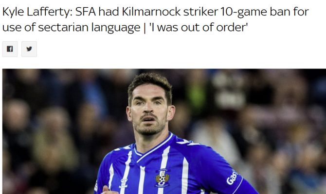 Ex rosa: Lafferty qualificato per 10 partite per l’uso di un linguaggio settario