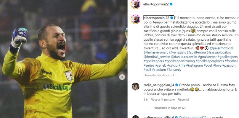 Alberto Pomini appende gli scarpini (e i guanti) al chiodo e si ritira dal calcio giocato. Ad annunciarlo è lo stesso ex portiere del Palermo col seguente post sui propri canali social:
