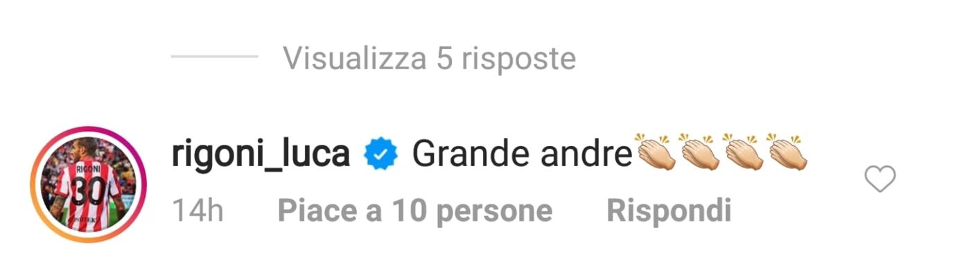 E c’è chi si è dimostrato particolarmente entusiasta dell’approdo a Palermo di Saraniti, un uomo il cui nome rievoca nella mente dei tifosi ricordi molto piacevoli: si tratta di Luca Rigoni, ex centrocampista rosanero nel primo anno di serie A con Iachini ed ex compagno di squadra dell’attaccante palermitano a Vicenza. Sotto il post della pagina Instagram rosanero in cui vengono ufficializzati i due nuovi acquisti, ecco che Rigoni sbuca inaspettatamente con la frase “Grande andre”, un incoraggiamento verso l’amico per la sua nuova avventura con la maglia della squadra della sua città.