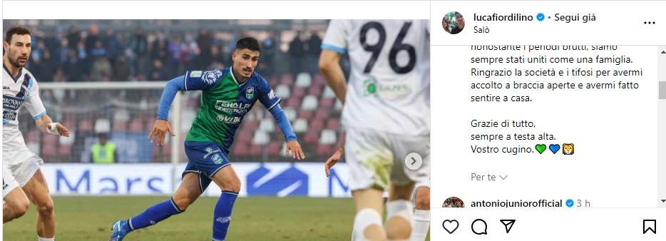 L’ex centrocampista rosanero Luca Fioridlino, in questa stagione ha vestito la maglia della Feralpisalò. Il calciatore ha salutato il club ed i tifosi, dopo la retrocessione acquisita poche giornate prima del termine della regular season, ringraziando e dispiacendosi per il finale di stagione.