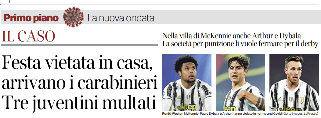 “Non credo che essere un calciatore famoso dia il diritto di essere sopra le regole. Verso le 22.30 sono uscito a portare a spasso il cane, ho visto una fila di auto parcheggiate a bordo strada e un gruppo di persone, tutte senza mascherina, di fronte al cancello. C’erano Mercedes con targa spagnola, tante Jeep e poi sono arrivati diversi taxi con a bordo giovani ragazze. Visto che le cene tra amici non sono consentite e il coprifuoco era scattato da un pezzo, ho deciso di avvertire le forze dell’ordine. I carabinieri hanno identificato una decina di invitati? Mi sembrano pochi, secondo me erano molti di più, magari qualcuno si è allontanato. Non ho nulla contro McKennie, che è un ragazzo tranquillo. Sta a casa o va allenarsi, mi sembra un bravo professionista. E io sono un tifoso bianconero. Per questo mi dispiace, ma se invece di andare alle feste pensassero di più al campo…“