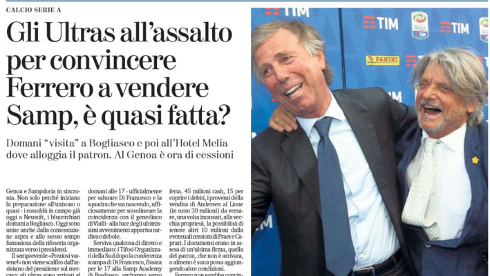 La Stampa: “Gli ultras all’assalto per convincere Ferrero a vendere Samp, è quasi fatta? Il bando del Palermo…”
