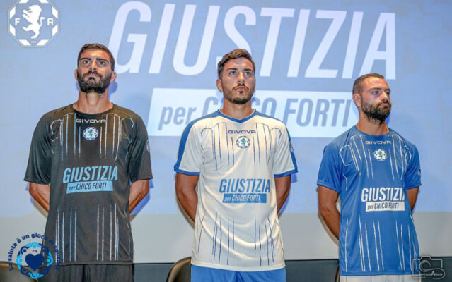 La Fidelis Andria, società del gruppo H di serie D scenderà in campo per la prima gara di campionato con impresso il messaggio sociale “Giustizia per Chico Forti”, scelta voluta dal club e dalla Csa, partner della società pugliese nella comunicazione che già nello scorso marzo aveva tappezzato la città di volantini e striscioni per una vicenda che attende una soluzione da oltre 20 anni. Ecco le immagini: