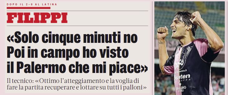 L’edizione odierna de “La Gazzetta dello Sport” si è soffermato sulle parole rilasciate da Giacomo Filippi al termine della vittoria conquistata dal Palermo.