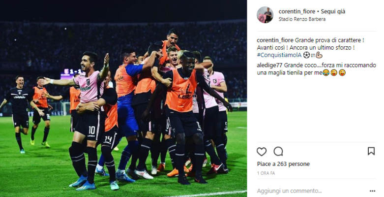 Corentin Fiore, difensore del Palermo, si congratula con i compagni di squadra per la prestazione di ieri contro il Frosinone che avvicina ancora di più la squadra alla massima serie. Di seguito il post del calciatore: