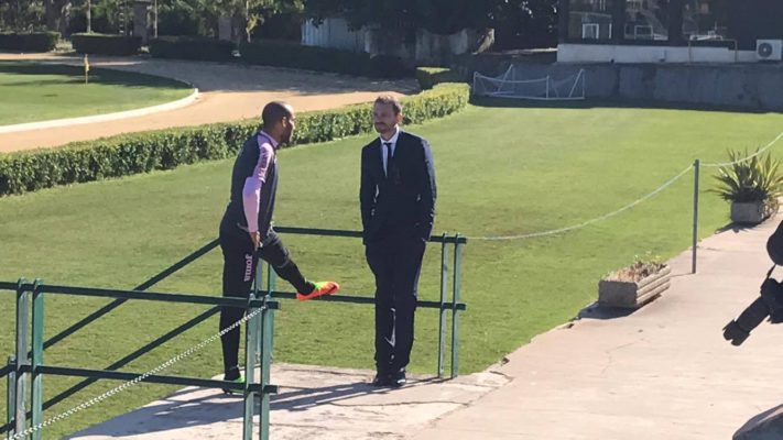 Seduta pomeridiana per il Palermo contro la Roma. Prima di scendere in campo, però, il presidente rosanero, Paul Baccaglini, si è soffermato a parlare con Haitam Aleesami.