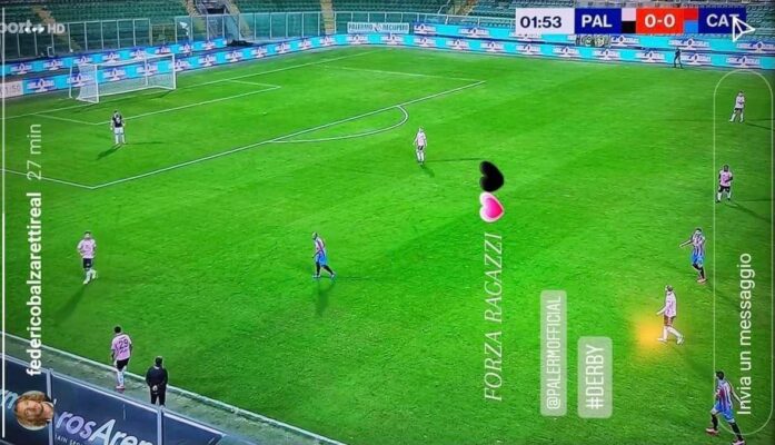 Attraverso le proprie storie instagram Federico Balzaretti ha pubblicato una foto mentre guarda il derby di Sicilia incitando il Palermo. Ecco in alto la foto in questione.
