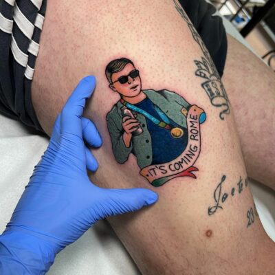 L’immagine del calciatore sardo apparso durante l’incontro con Mattarella al Quirinale, con indosso occhiali da sole e borraccia è sin da subito diventato un meme sui social e adesso anche un Tattoo.