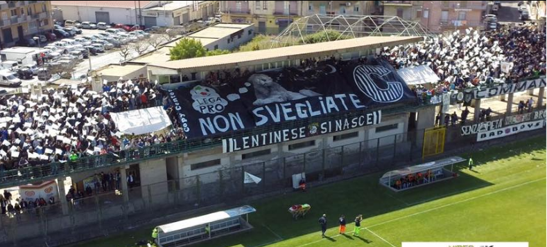 Attraverso la propria pagina Facebook, la Sicula Leonzio mostra la coreografia fatta dai tifosi in occasione dei festeggiamenti di oggi per la promozione in Lega Pro, arrivata matematicamente già qualche giorno fa. In alto la foto in questione.