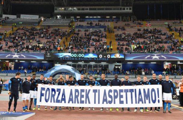 FOTO, i calciatori del Napoli espongono striscione: “Forza Arek ti aspettiamo!”