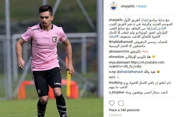 “Coronado sembra ormai aver preso una decisione, ma lo Sharjah va in pressing. E lo fa in un modo anche abbastanza inusuale: al tempo dei social, il club arabo ha pubblicato su Instagram e Twitter la foto del fantasista del Palermo, annunciando di essere “in trattativa per un contratto col fantasista italiano. Gli emiratini escono allo scoperto, dopo aver messo sul piatto 1,2 milioni a stagione per quattro anni da versare sul conto del giocatore e sei milioni di euro per i rosanero. L’affare è ormai sulla via della fumata nera, perché Coronado spera di poter giocare in Serie A, dove l’unica squadra ad essersi mossa concretamente e la Spal, ma senza ancora presentare una vera offerta. Inutile specificare che, qualora i ferraresi dovessero presentarsi da Foschi per acquistare il brasiliano, non potrebbero mettere sul tavolo la stessa cifra proposta dallo Sharjah. Anche per questo il dirigente romagnolo spera in un dietrofront da parte del calciatore, alla ricerca di un’altra plusvalenza dopo i nove milioni ottenuti dall’Empoli per La Giunina e aspettando che il Bologna formalizzi un’offerta per Nestorovski, altro pezzo pregiato della vetrina.  […]”. Questo quanto analizzato dall’edizione odierna de “Il Giornle di Sicilia” in merito al mercato del Palermo e al futuro di Coronado. Di seguito i post dello Sharjah: