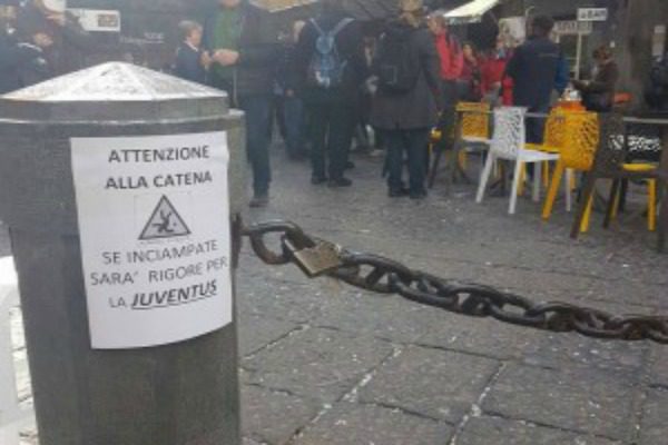 FOTO, Napoli: “Occhio alla catena, se inciampate sarà rigore per la Juventus”