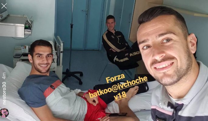 Dopo la vittoria di ieri sera per 2-1 contro il Benevento, oggi i rosanero Ilija Nestorovski e Slobodan Rajkovic sono andati in visita dal compagno Ivaylo Chochev, che com sappiamo ha subito un brutto infortunio al ginocchio poco tempo fa. Il capitano dei rosanero incita alla ripresa del bulgaro, pubblicando una foto attraverso le proprie Instagram stories. In alto lo scatto in questione.