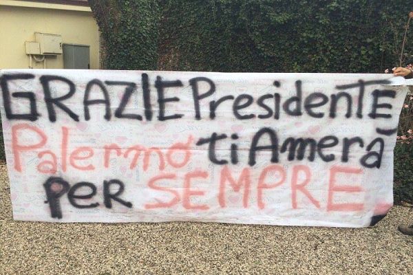 E’ apparso questa mattina, davanti casa di Maurizio Zamparini in quel di Aiello del Friuli, uno striscione da parte di alcuni tifosi rosanero con scritto: “Grazie presidente, Palermo ti amerà per sempre”. In alto la foto.