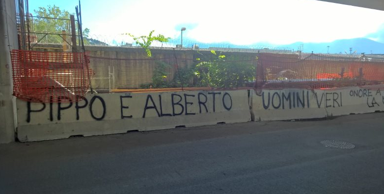 Nella giornata di ieri è uscita la notizia dell’indagine da parte della Procura Federale per via di alcuni messaggi inviati dai calciatori del Parma Calaiò e Ceravolo ai calciatori dello Spezia ed ex compagni De Col e Masi qualche giorno prima della sfida terminata con il risultato di 0-2 e che ha promosso in A gli emiliani. I calciatori dello Spezia hanno denunciato l’accaduto e per questo i tifosi spezzini li hanno elogiati con delle scritte, anche per via del fatto che le tifoserie delle due squadre non vanno molto d’accordo. Contestazione invece per l’ex difensore del Palermo, Claudio Terzi, riporta “CittaDellaSpezia.com”, perché non avrebbe gradito la contestazione dei tifosi proprio dopo la sconfitta con il Parma. Di seguito le foto delle due scritte: