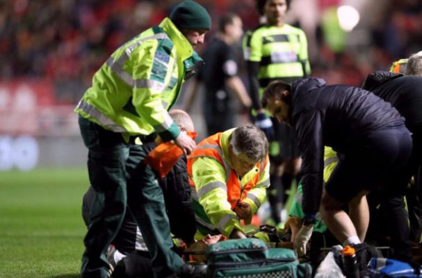 Attimi di terrore ieri sera per il calciatore del Huddersfield Jonathan Hogg. Durante il confronto contro il Bristol City nella Championship inglese, si è scontrato violentemente con il compagno Mark Hudson sulla trequarti difensiva. Il primo ha scontrato la testa con il secondo, ruotando il collo in modo innaturale. L’intervento dei sanitari è stato immediato dopo il essere finito a terra senza sensi. In 14 minuti hanno constatato che il giocatore aveva ripreso conoscenza ed è stato trasportato in ospedale per i controlli del caso. Il club ha poi comunicato che Hogg sta bene. In alto la foto in questione del momento dei soccorsi.