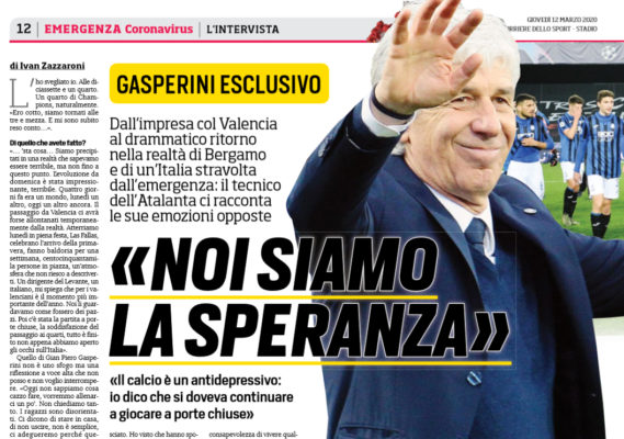 L’edizione odierna de “Il Corriere dello Sport” ha riportato alcune parole di Gasperini in merito alla questione relativa all’emergenza Coronavirus: «Viviamo sospesi. Il centro di Zingonia è chiuso, siamo venti più lo staff , vorremmo fare due corse, una partitella. Naturalmente seguendo le indicazioni dei medici e rispettando il protocollo. “Troviamoci”, insistono i ragazzi. Ma troviamoci dove, se non è consentito? Nelle strade ci sono i posti di blocco, la percezione del dramma adesso è completa. La peste, è come la peste. La nostra vita è cambiata, la vita di tutti è cambiata. Un mondo roveciato. Ho visto che hanno spostato le partite di Europa League, tra un po’ toccherà anche alla Champions, immagino. L’Italia è avanti di venti giorni rispetto ad altri Paesi, dubito che qualcuno possa azzardare delle previsioni sulla fine di questo incubo. Per quel che ci riguarda, nel giro di poche ore siamo passati dalla gioia per aver realizzato una grande impresa allconsapevolezza di vivere qualcosa di inimmaginabile. Sento soltanto le sirene delle ambulanze. State a casa, state in famiglia, non uscite. E da queste parti, in Lombardia, siamo suffi cientemente organizzati, pur se in difficoltà. Mi chiedo cosa potrebbe accadere a Roma, a Napoli».