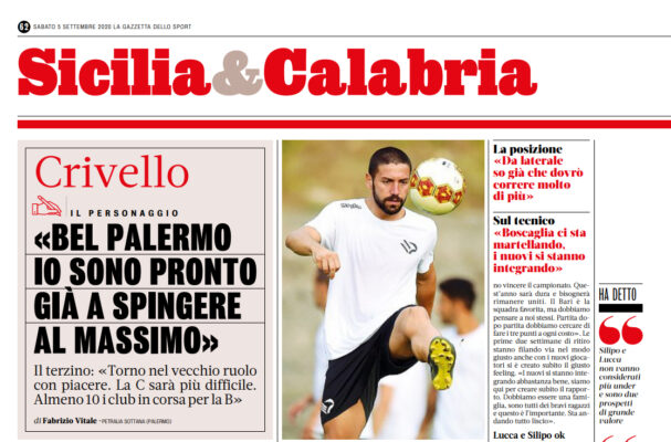 Gazzetta dello Sport: “Crivello: «Bel Palermo, io sono pronto già a spingere al massimo»”