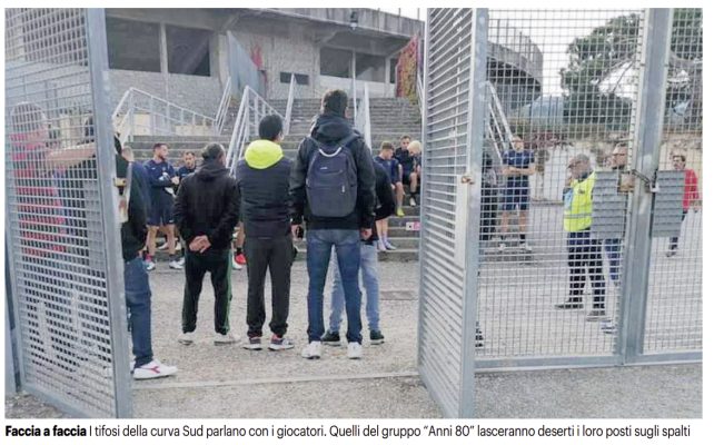 Acqua ancora agitate in casa Cosenza. I tifosi rossoblù si rifiutano di vivere un’altra stagione fatta d’angoscia e perplessità e nella giornata di ieri hanno preso l’iniziativa. Sia quelli della curva Nord che quelli della curva Sud hanno fatto sentire la propria voce. I secondi, frequentatori assidui del settore “Bergamini”, ieri si sono anche presentati nei paraggi del “Marulla” per avere in confronto diretto con la squadra ed esprimere tutta la loro delusione per come stanno andando le cose.