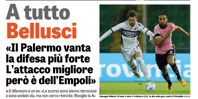 Gazzetta dello Sport: “A tutto Bellusci: «Il Palermo vanta la difesa più forte. L’attacco migliore però è dell’Empoli»”