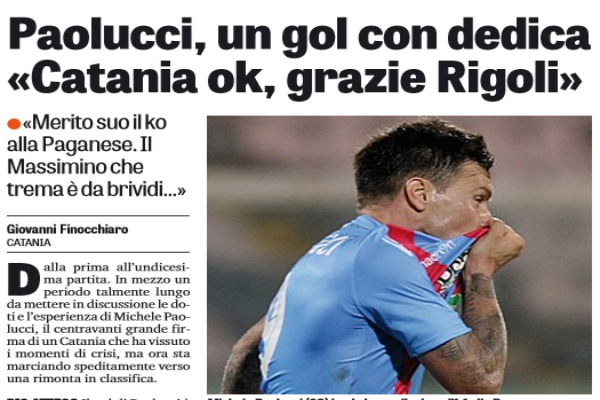 Gazzetta dello Sport, altre siciliane: “Paolucci, un gol con dedica «Catania ok, grazie Rigoli» “