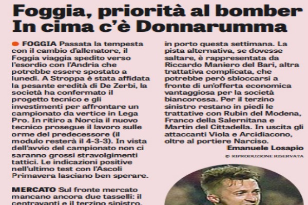 Gazzetta dello Sport: “Anche il Foggia vuole Donnaruma”