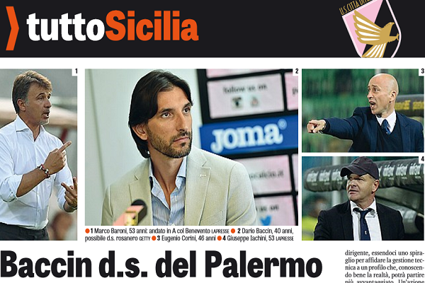 Gazzetta dello Sport: “Baccin ds del Palermo, ora la pista è concreta. Incontri con Zamparini e Baccaglini, la situazione”