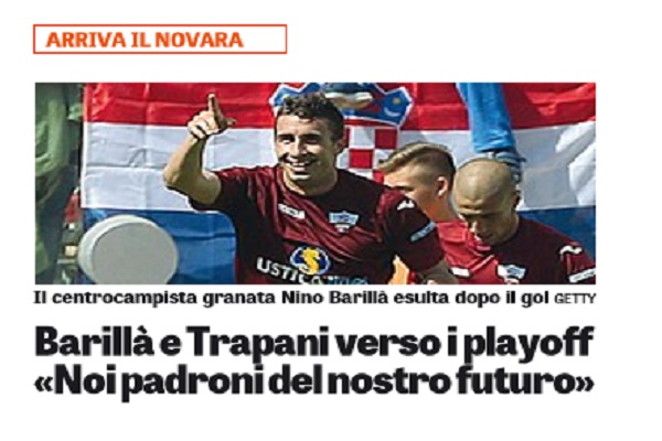 Gazzetta dello Sport: “Barillà e Trapani verso i playoff: «Noi padroni del nostro futuro»”