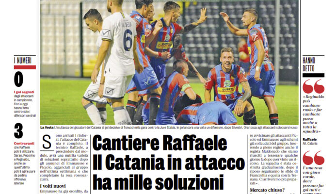 Gazzetta dello Sport: “Cantiere Raffaele. Il Catania in attacco ha mille soluzioni”