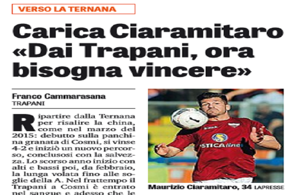 Gazzetta dello Sport: “Carica Ciaramitaro: «Dai Trapani, ora bisogna vincere»”