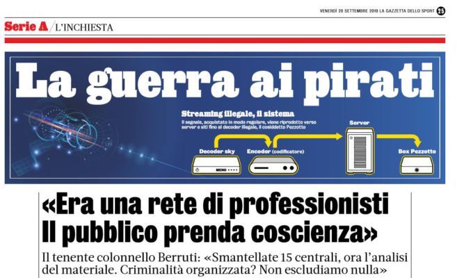 Gazzetta dello Sport: “Caso pay tv illegale, parla il colonnello Berruti: «Possiamo rintracciare i clienti»”