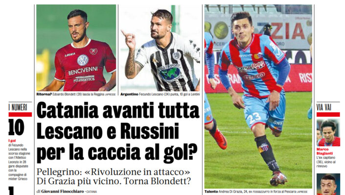Gazzetta dello Sport: “Catania, avanti tutta. Lescano e Russini per la caccia al gol?”