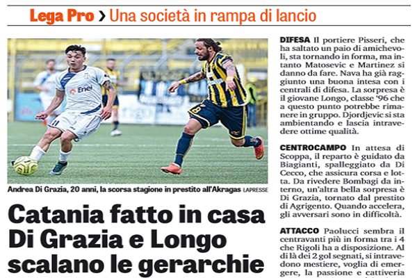 Gazzetta dello Sport: “Catania fatto in casa. Di Grazia e Longo scalano le gerarchie”