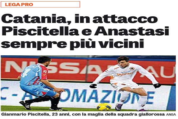 Gazzetta dello Sport: “Catania, in attacco Piscitella e Anastasi sempre più vicini”