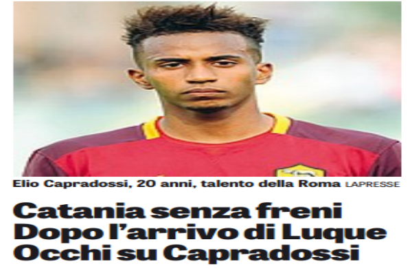 Gazzetta dello Sport: “Catania senza freni. Dopo l’arrivo di Luque, occhi su Capradossi”