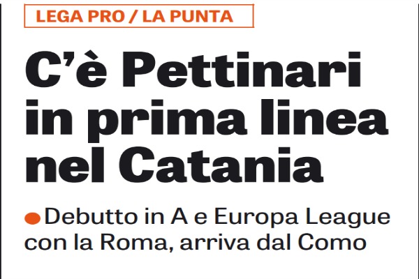 Gazzetta dello Sport: “C’è Pettinari in prima linea nel Catania. Debutto in A e Europa League con la Roma, arriva dal Como”
