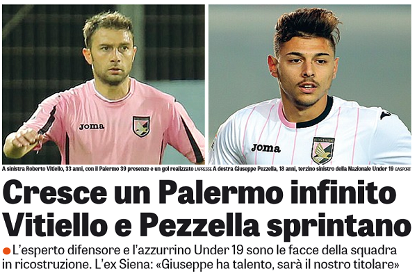 Gazzetta dello Sport: “Cresce un Palermo infinito, Vitiello e Pezzella sprintano. L’esperto difensore e l’azzurrino Under 19 sono le facce della squadra in ricostruzione”