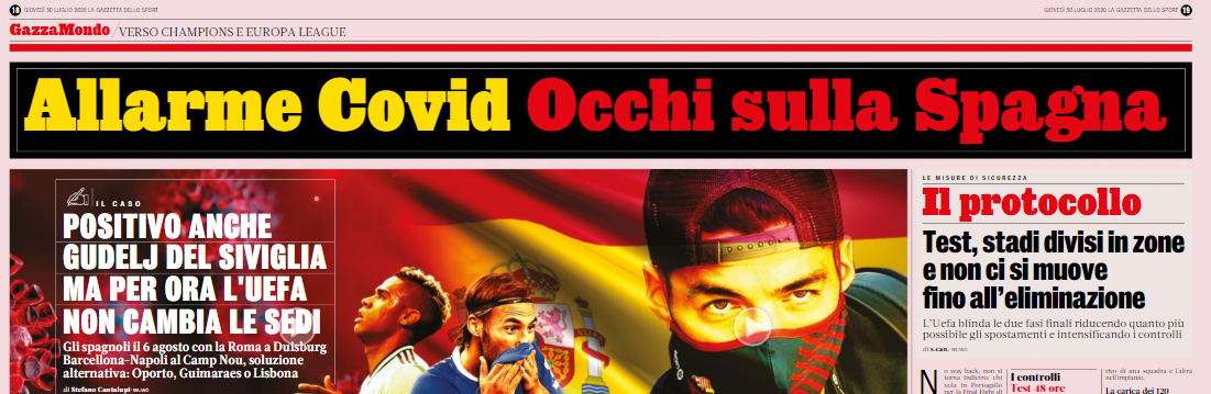 Gazzetta dello Sport: “Allarme Covid sulle coppe europee. Test, stadi divisi in zone e non ci si muove fino all’eliminazione”