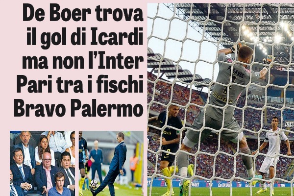 Gazzetta dello Sport: “De Boer trova il gol di Icardi ma non l’Inter, pari tra i fischi. Bravo Palermo!”