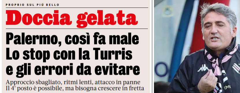 Gazzetta dello Sport: “Doccia gelata. Palermo, così fa male. Lo stop con la Turris e gli errori da evitare”