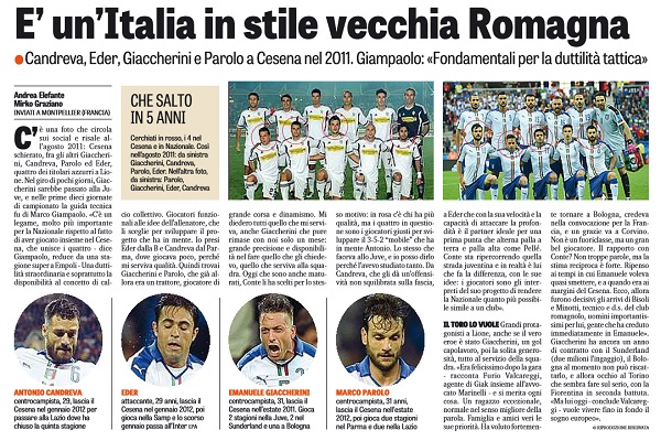 Gazzetta dello Sport: “E’ un’Italia in stile vecchia Romagna. Candreva, Eder, Giaccherini e Parolo a Cesena nel 2011. Giampaolo: «Fondamentali per la duttilità tattica»”