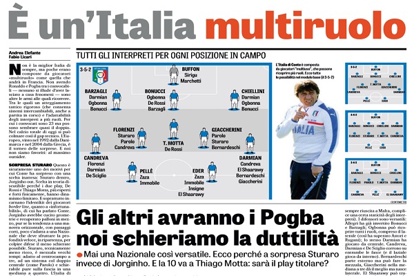 Gazzetta dello Sport: “È un’Italia multiruolo. Gli altri avranno i Pogba noi schieriamo la duttilità”