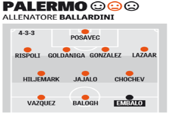 Il Palermo del futuro inizia a prendere forma, con un’analisi della possibile nuova formazione in base agli acquisti e alle cessioni che caratterizzeranno il calciomercato rosanero. Ad oggi la squadra di Ballardini sembra orientata ad utilizzare un 4-3-3 che garantisca spazio per agire agli esterni: non per niente, infatti, è di Carlos Embalo l’unico nuovo nome che compare nella formazione. Il fantasista è schierato a sinistra, mentre a destra c’è Vazquez, anche se andrà via, e al centro Balogh. L’italo-argentino non è però l’unico partente schierato in formazione: in difesa compaiono anche i nomi di Gonzalez e Lazaar, che difficilmente sembrano orientati alla permanenza in Sicilia. Il marocchino è schierato a sinistra, dall’altro lato correrà Rispoli e al centro il costaricano e Goldaniga avranno il compito di proteggere il giovane Posavec. A centrocampo spazio a Hiljemark, Chochev e Jajalo. Si tratta comunque di una formazione ancora allo stato embrionale, dato che difficilmente i vari reparti resteranno così scoperti: a tal proposito si continuano a seguire i profili di Ciano, Angulo, Borriello, Gnoukouri e Fagundez. Questo quanto scrive l’edizione odierna della “Gazzetta dello Sport”.