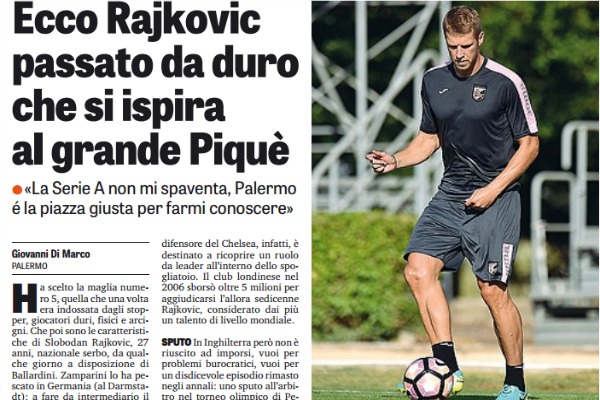 Gazzetta dello Sport: “Ecco Rajkovic, passato da duro che si ispira al grande Piquè”
